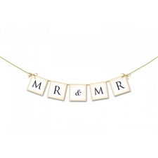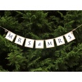 Girlanda z angielskim napisem "JUST MARRIED" w srebrnym kolorze.