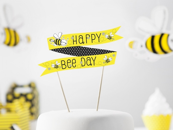 Karteczka na patyczkach Pszczółka, z napisem Happy Bee-day