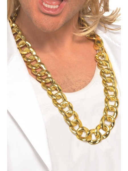 Złoty łańcuch na szyi idealny jako karnawałowy dodatek.